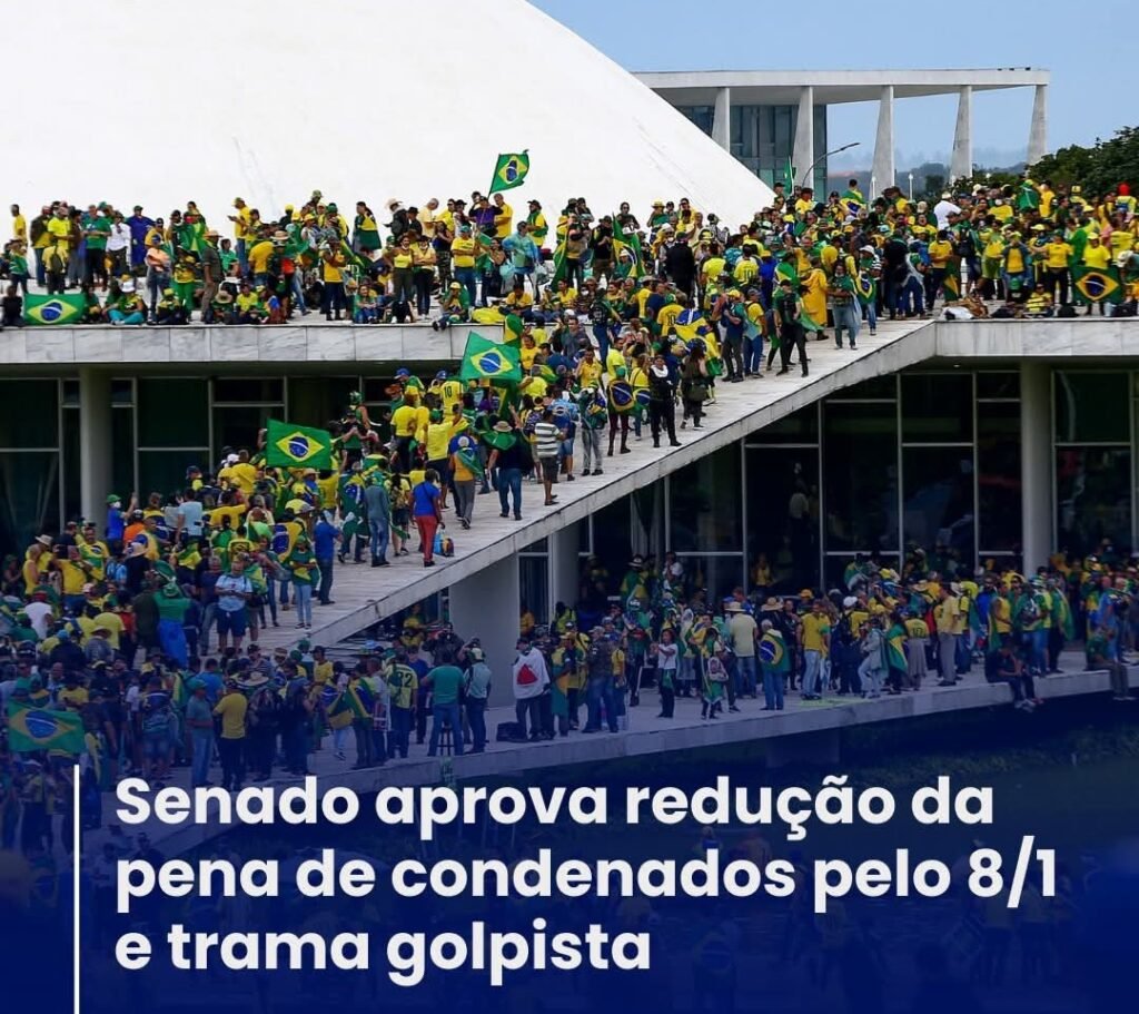 O Senado aprovou nesta quarta-feira (17), em votação nominal, o projeto de Lei (PL) 2162/2023, o chamado PL da Dosimetria que prevê a redução de penas de condenados pelos atos antidemocráticos de 8 de janeiro de 2023 e pela tentativa de golpe de Estado.Foram 48 votos favoráveis e 25 votos contra. O texto segue agora para a sanção presidencial.Os senadores aprovaram o parecer do senador Esperidião Amin (PP-SC), que reduz as penas dos condenados por atos golpistas. Entre eles, o ex-presidente Jair Bolsonaro. Mais cedo, o projeto foi aprovado na Comissão de Constituição e Justiça (CCJ) da Casa.Amin, que é favorável à anistia, defende que a redução das penas visa “pacificar o país”.“Somos da posição de que a anistia para os condenados pelos eventos de 8 de janeiro deveria ser analisada à luz do princípio da unidade nacional e da função integradora do direito constitucional. A manutenção de centenas de cidadãos em regime fechado por atos que, embora ilícitos, não configuraram insurgência armada ou ameaça real à soberania, pode agravar divisões e comprometer a legitimidade das instituições”, argumentou.“O perdão apresentar-se-ia como solução juridicamente possível e politicamente adequada para encerrar um ciclo de tensão e reafirmar o compromisso do Estado brasileiro com a democracia e a pacificação social”, concluiu.O relator acatou uma emenda que determina que a redução será aplicada apenas aos condenados pelos atos golpistas. O senador considerou a emenda como apenas um ajuste de redação e não de mérito, para que o projeto não tenha que retornar à Casa de origem – no caso, a Câmara dos Deputados, que aprovou a matéria na noite do dia 9 de dezembro. Um grupo de senadores se manifestou contra o projeto por não representar o anseio do país.